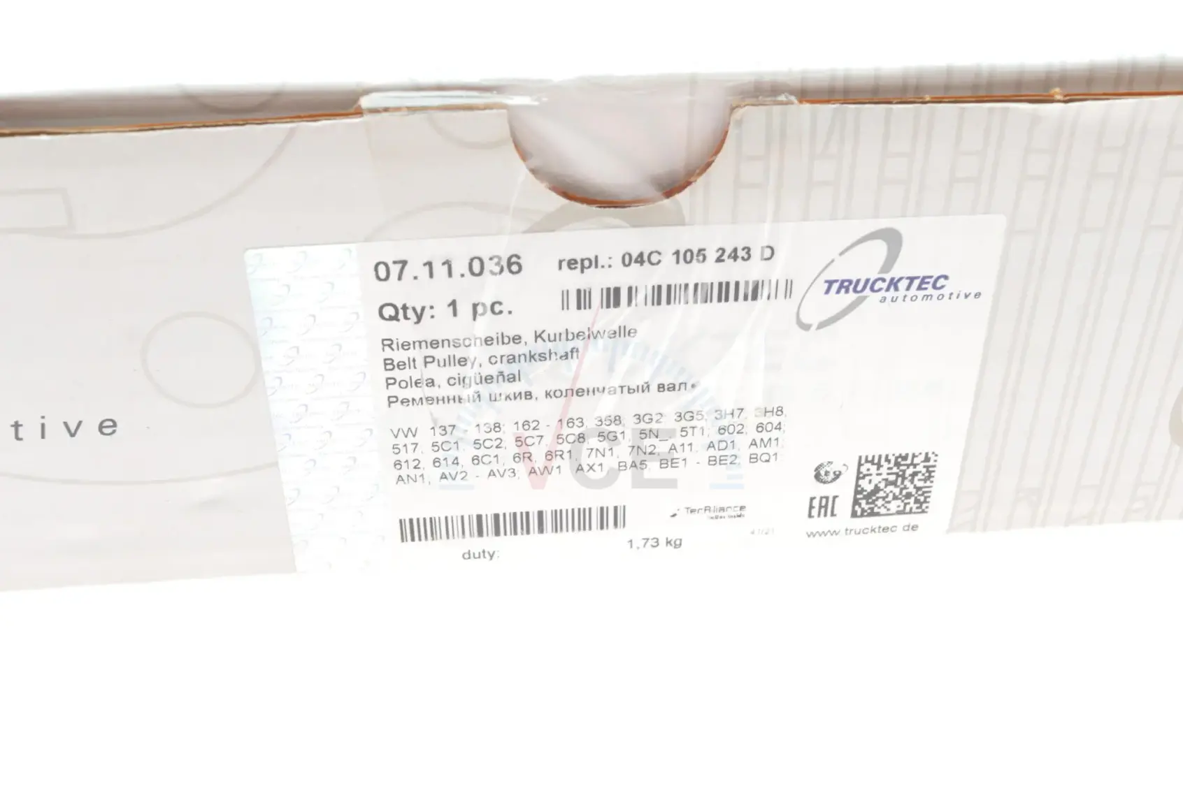 07.11.036 TRUCKTEC AUTOMOTIVE Шкив коленвала vw caddy iv 1.2/1.4/1.6 15-20