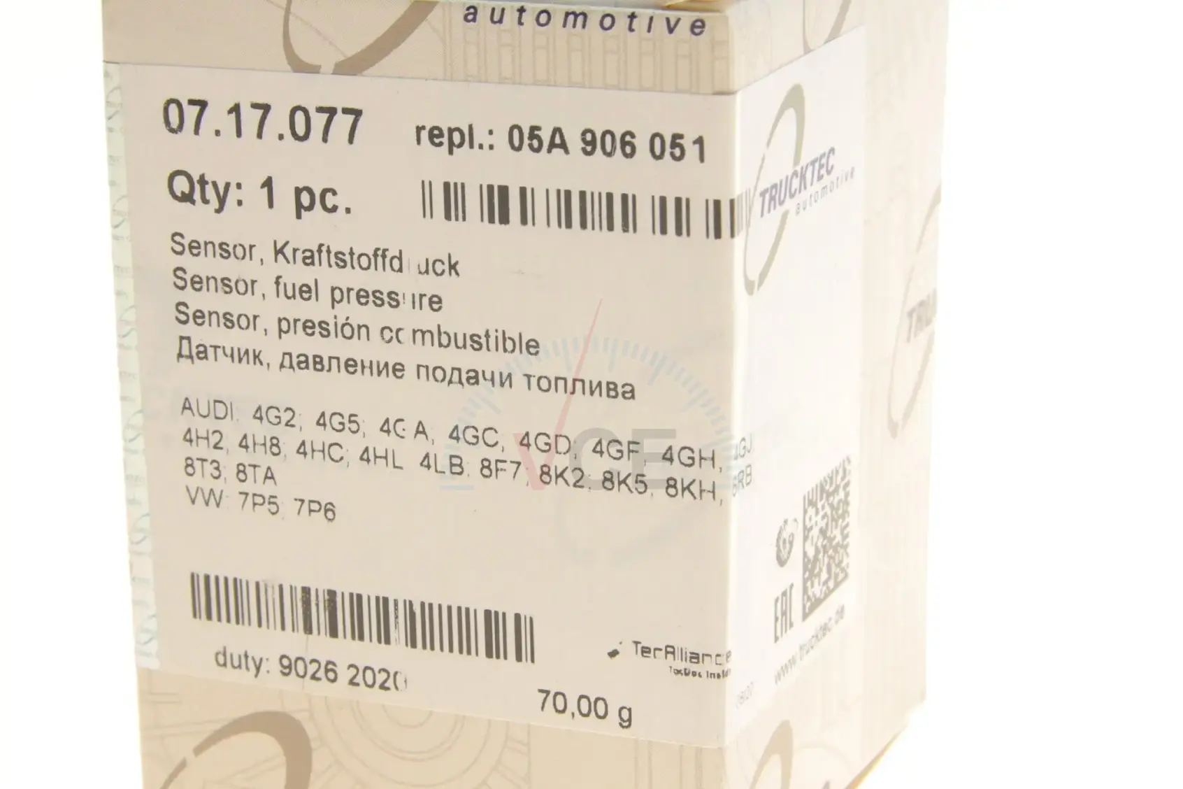 07.17.077 TRUCKTEC AUTOMOTIVE Датчик давления топлива audi q5/q7/vw touareg 3.0 tdi 07-18