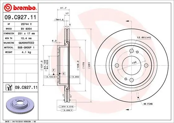 - BREMBO 09.C927.11 подходит к маркам/моделям авто: