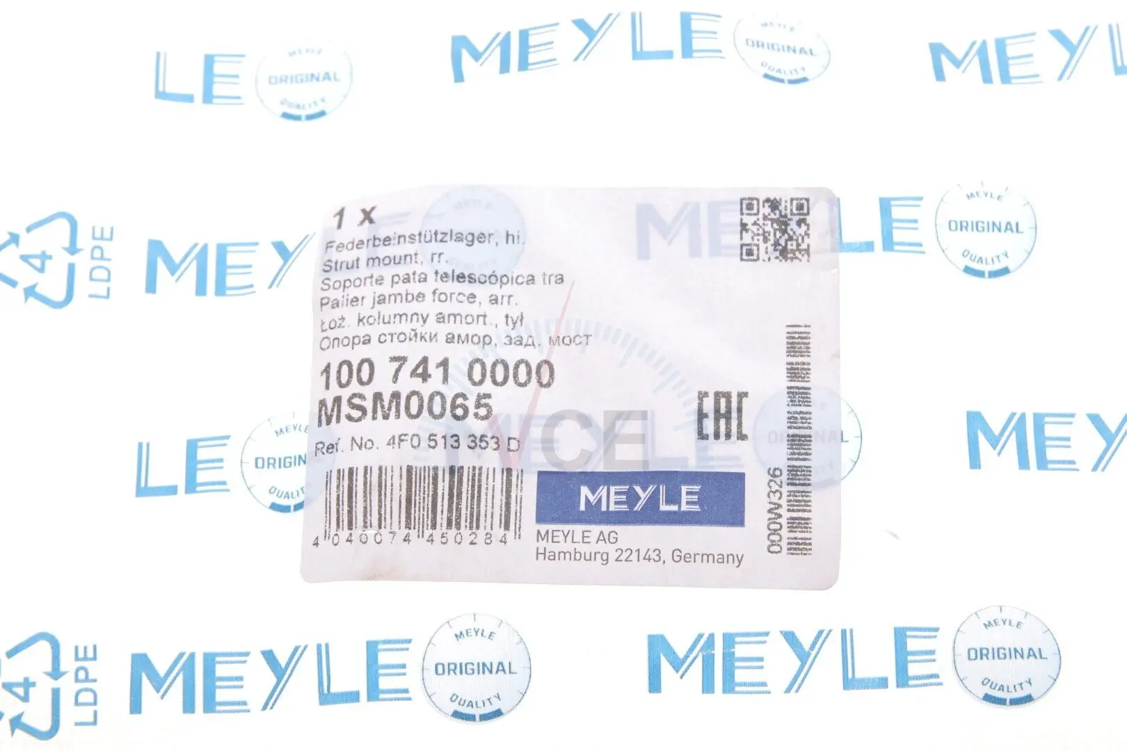 100 741 0000 MEYLE Подушка амортизатора (заднего) audi a4/a6 1.6-5.2tdi 94-