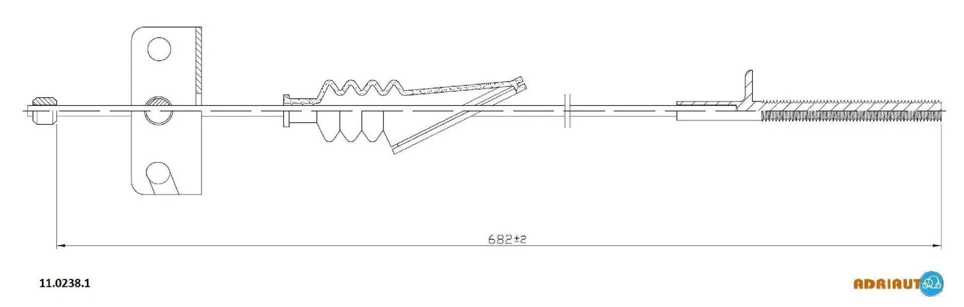 1102381 ADRIAUTO Трос стояночного тормоза передний (680мм) FIAT MULTIPLA 1.6-1.6CNG-1.9D 04.99-06.10