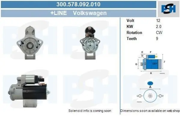 300.578.092.010 CV PSH Стартер Volkswagen 2.0 kw