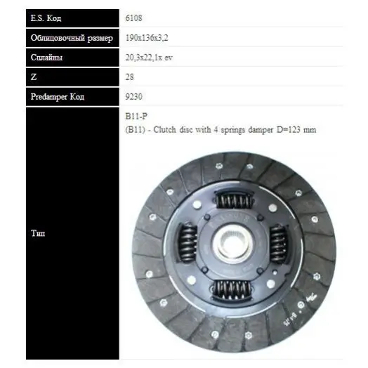 6108 SASSONE Vw диск сцепления polo 1.9sdi 01- (190мм, 4 пружины)