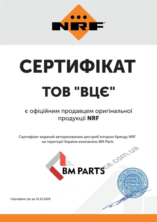 Нидерланский NRF – известный производитель теплообменников для автотранспортной, морской и железнодорожной промышленности. Большая часть производственных мощностей компании сосредоточена в Нидерландах и Франции. Ассортимент насчитывает более чем 7 тысяч наименований. Продукция ISO-сертифицирована.