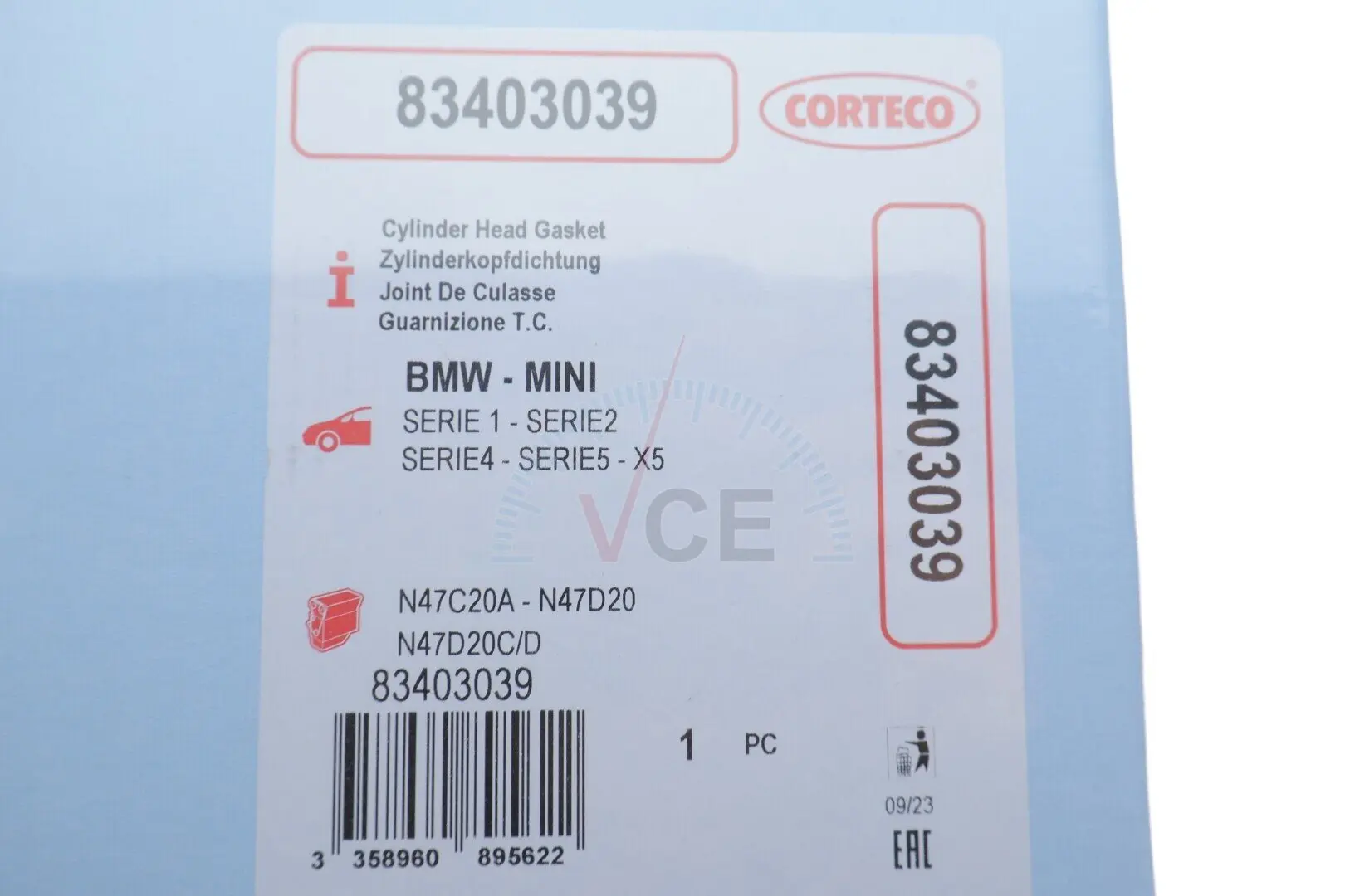 83403039 CORTECO Прокладка ГБЦ BMW 5 (F10)/X3 (F25)/X5 (F15/F85) 2.0d (N47) 10-18 (1.45mm)