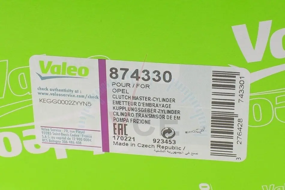 874330 VALEO Главный цилиндр, система сцепления