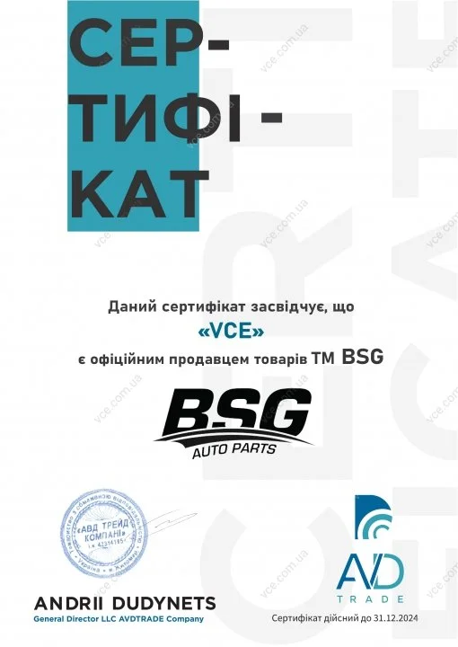 BSG – довольно известный турецкий производитель, предлагающий бюджетные автомобильные запчасти. Специализируется на изготовлении и переупаковке запчастей для коммерческого транспорта марок Ford и Mercedes-Benz, но с недавних пор в ассортименте появились запчасти для авто основных европейских, корейских марок.