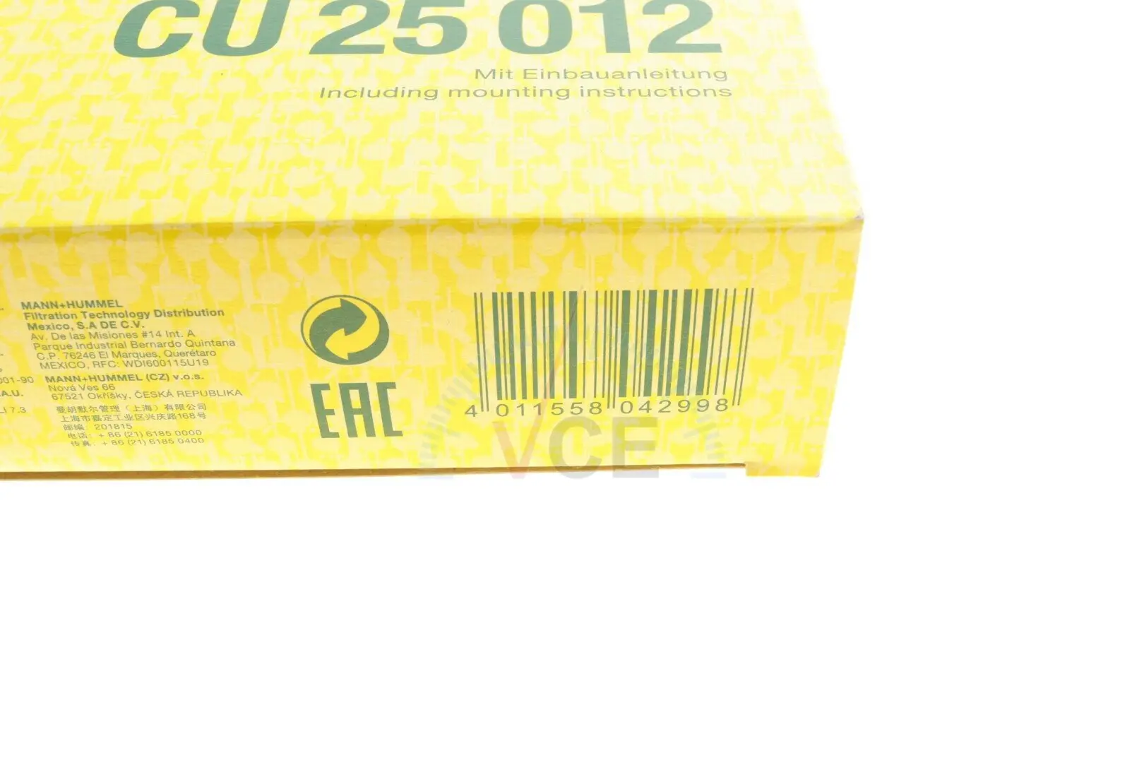 CU 25 012 MANN-FILTER Фильтр, воздух во внутреннем пространстве