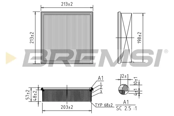 FA1641 BREMSI Фильтр воздушный vw t2 -92/ audi 100 -90/lada 2110-2112/kalina 04-
