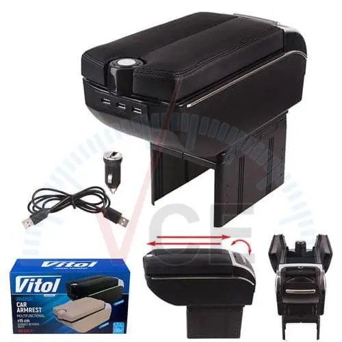 HJ48020B VITOL — Подлокотник универсальный сдвижной, пластик/кожзам, черный