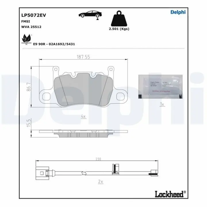 LP5072EV DELPHI Тормозные колодки, дисковые.
