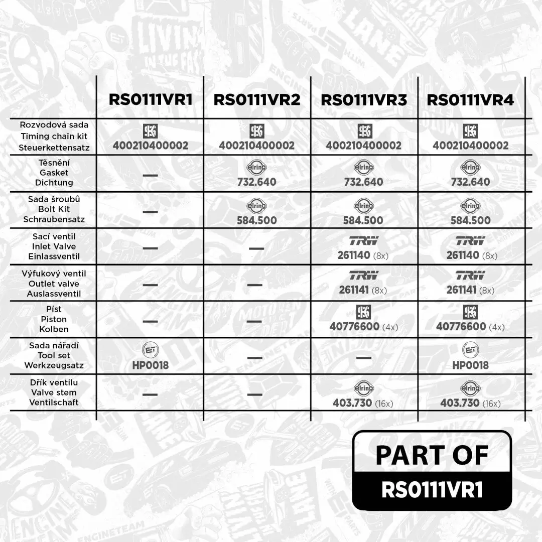- ET ENGINETEAM RS0111VR1 подходит к маркам/моделям авто: