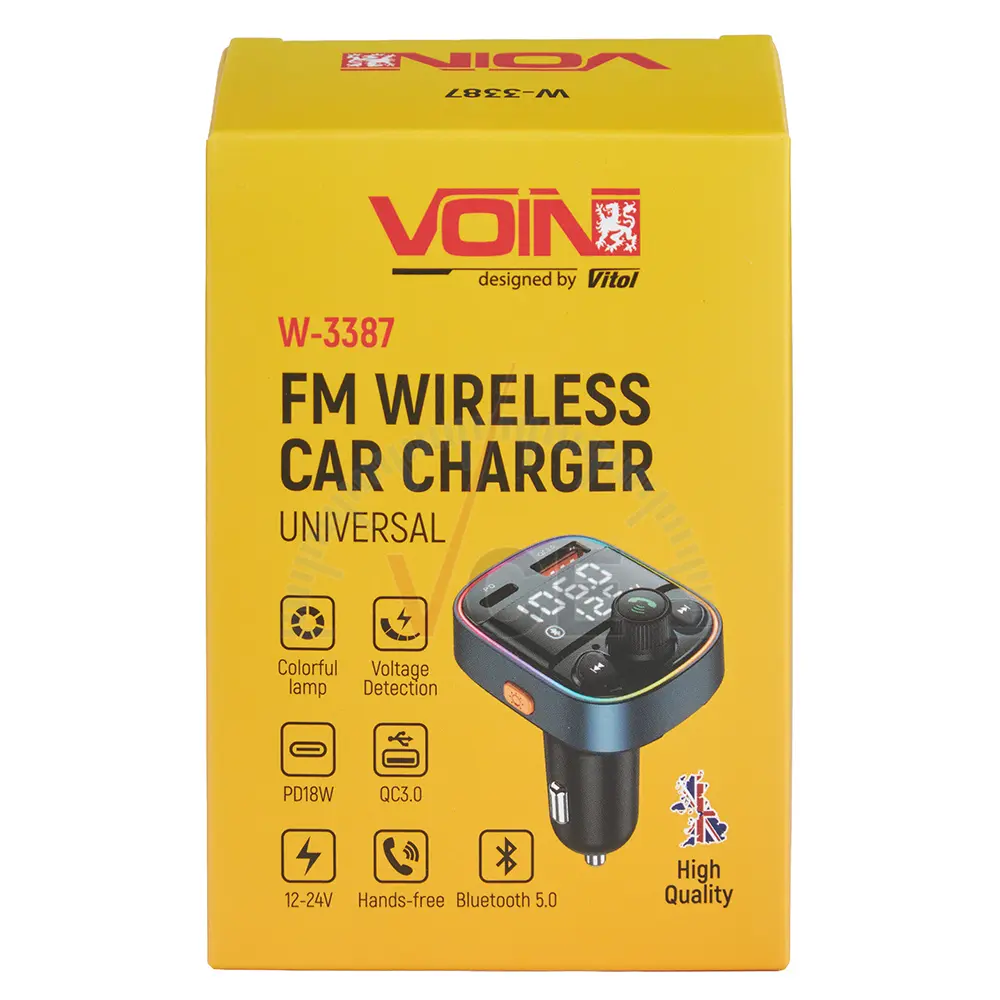 VOIN W-3387 — это современный и компактный FM-модулятор, который сделает каждую поездку более комфортной. Он сочетает в себе функции зарядного устройства, Bluetooth-приёмника и громкой связи, позволяя наслаждаться музыкой и безопасно общаться за рулём.