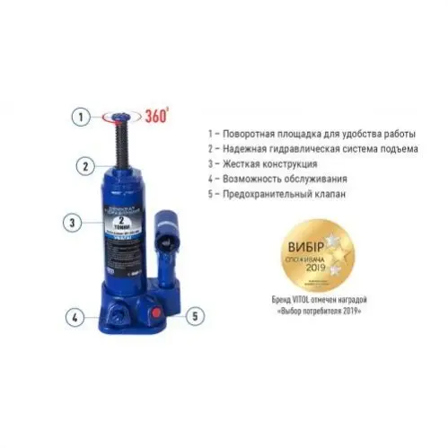Домкрат вертикальний (пляшковий) VITOL 2 т – Надійність та зручність у кожному використанні