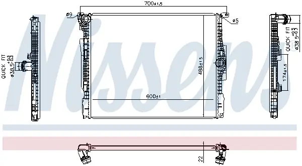 606513 Nissens Радіатор двигуна BMW 1 (F20), 1 (F21), 2 (F22, F87), 2 (F23), 3 (F30, F80), 3 (F31), 3 GRAN TURISMO (F34), 4 (F32, F82), 4 (F33, F53)