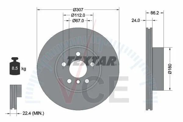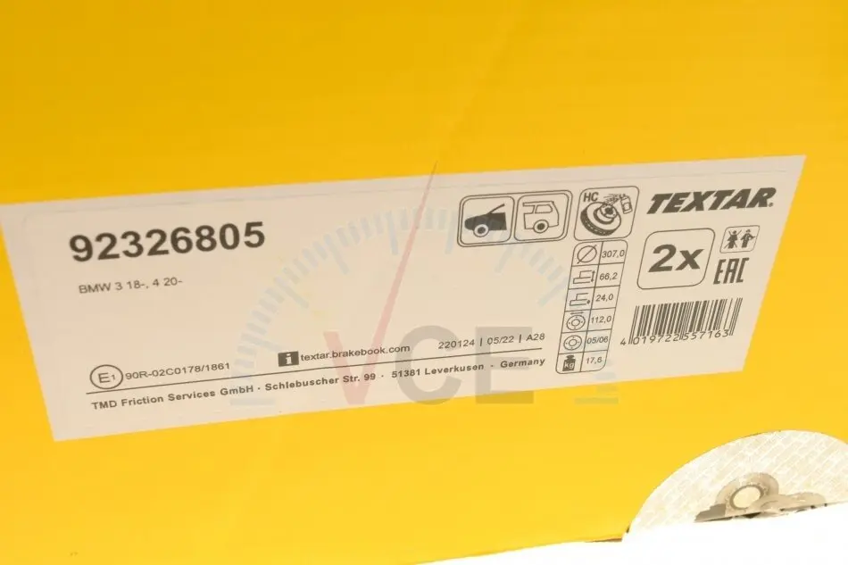 92326805 TEXTAR Диск гальмівний (передній) bmw 2 (g42)/3 (g20/g80)/4 (g26/g23/g83) 20- (307x24) pro+