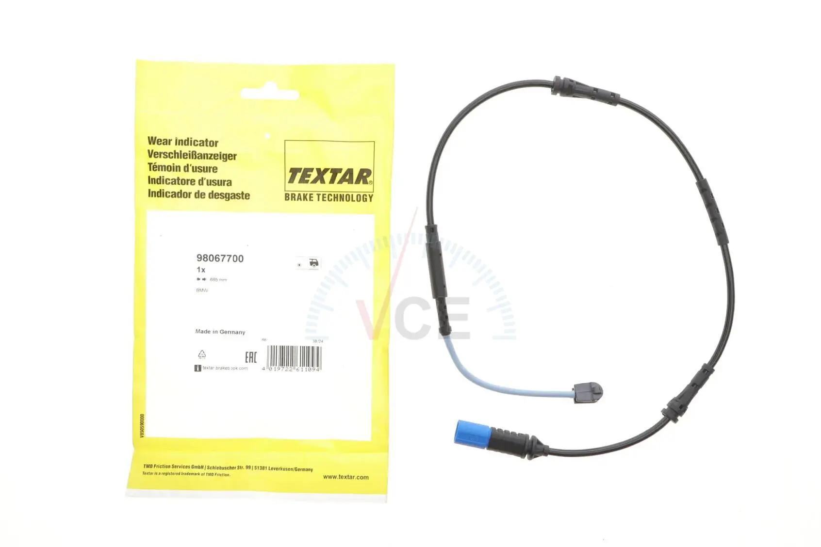 98067700 TEXTAR Датчик зносу гальмівних колодок (задніх) BMW X1 (U11) 22-/X2 (U10) 23-/Mini (U25) 23- (L=685mm)