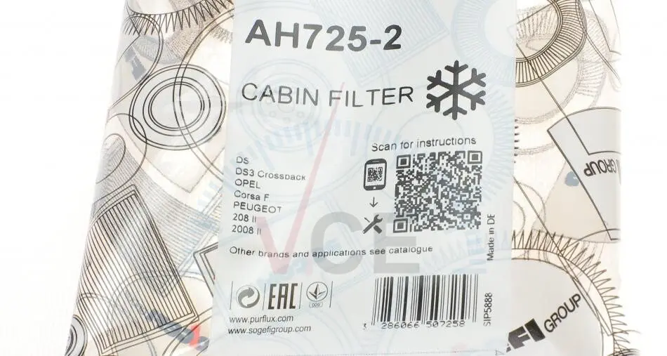AH725-2 PURFLUX Фільтр, повітря у внутрішньому просторі