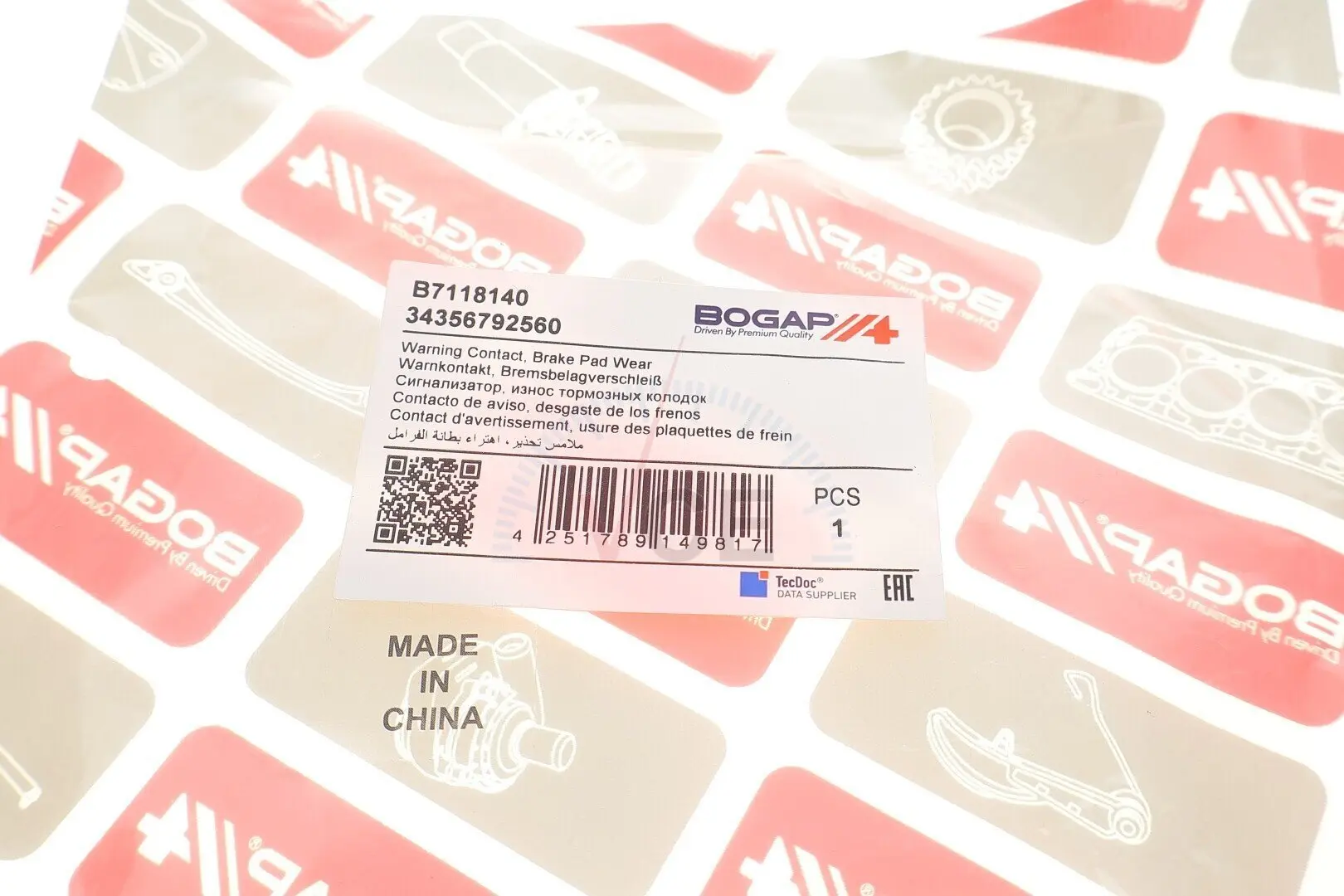 B7118140 BOGAP Датчик зносу гальмівних колодок передніх