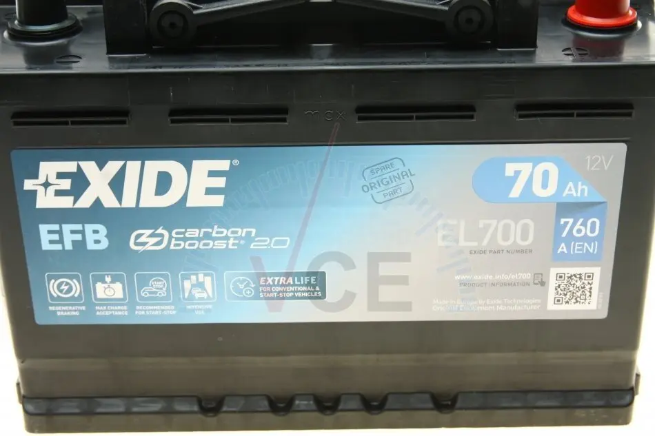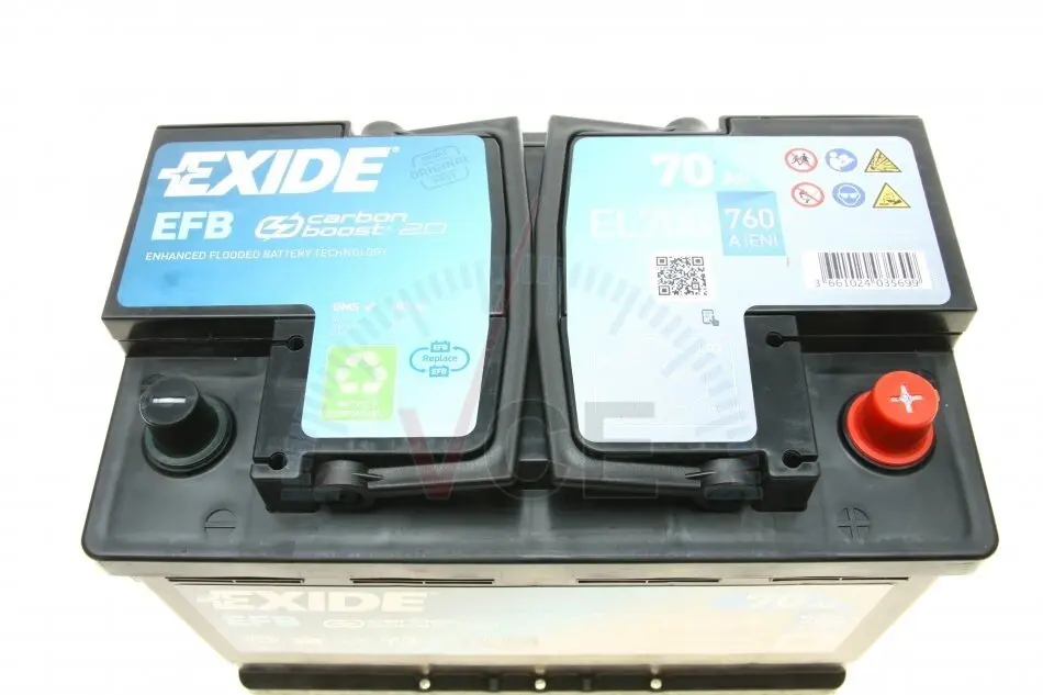 EL700 EXIDE Акумулятор 70Ah-12v EN760 EFB Start-Stop Carbon Boost 2.0, R