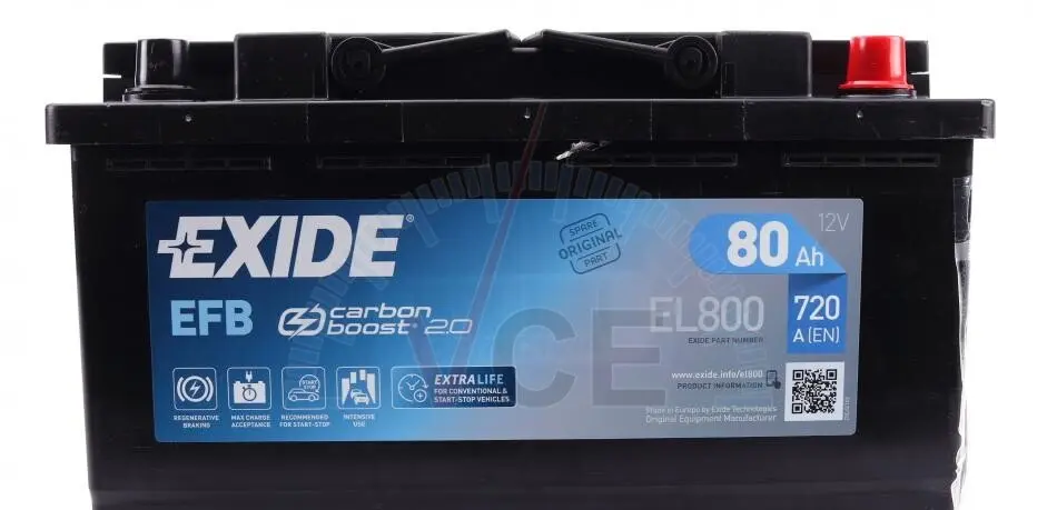 EL800 EXIDE Акумулятор 80Ah-12v EN800 EFB Start-Stop Carbon Boost 2.0, R