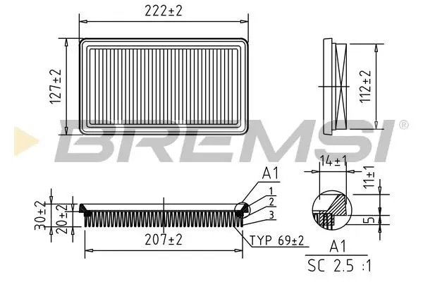 FA0587 BREMSI Фільтр повітряний fiat 500/panda/punto 0.9 12-