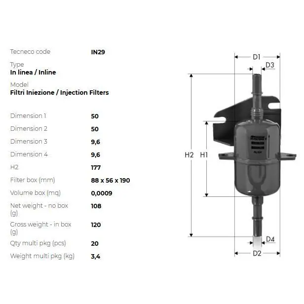 IN29 Tecneco Фільтр паливний fiat palio 1.1i,1.4 spi,1.6i 7/97->,siena 1.