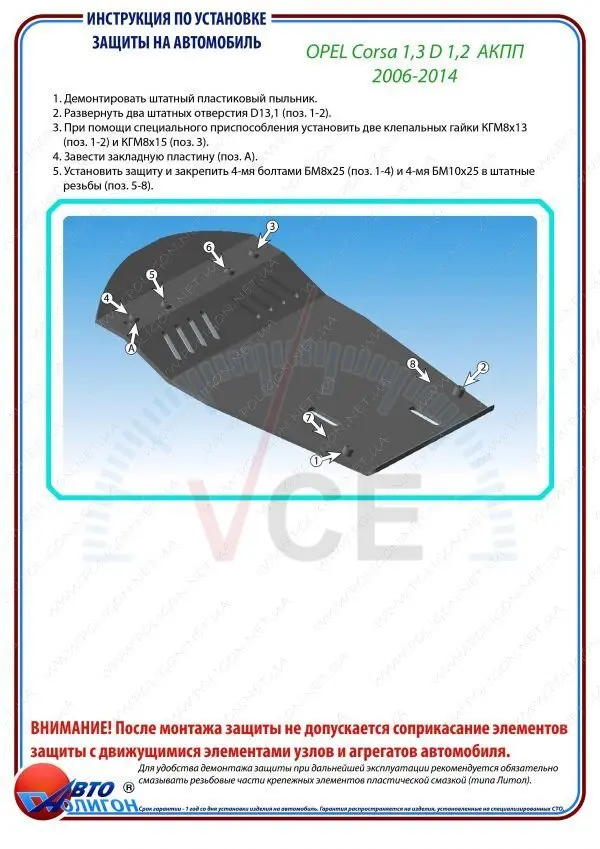 PA01654 Полігон Авто Захист двигуна OPEL Corsa D 1,3D 1,2 АКПП 2006 — 2014 Захист моторн.+КПП